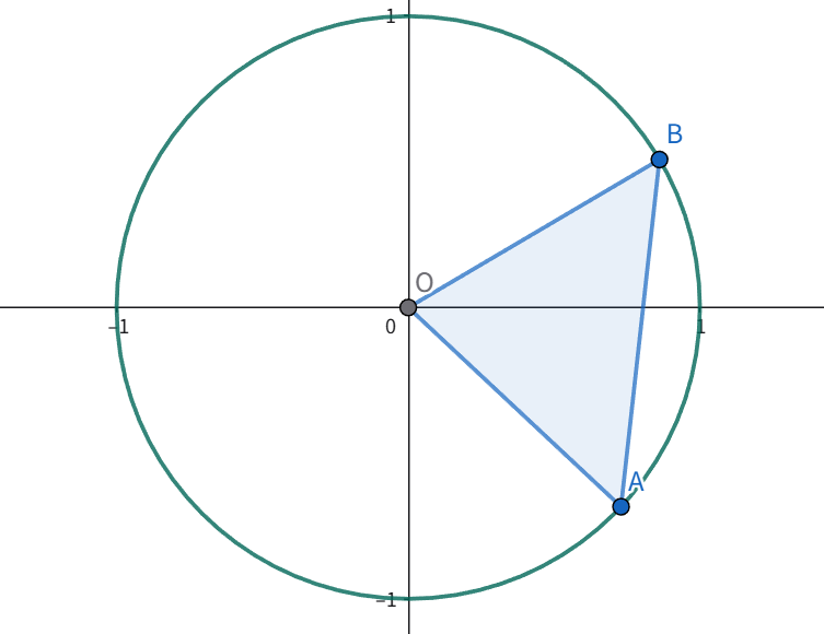 $\vert AB\vert ^2 = \vert OA\vert ^2 + \vert OB\vert ^2-2\vert OA\vert \vert OB\vert \cos(\alpha-\beta)=2-2\cos(\alpha-\beta)$